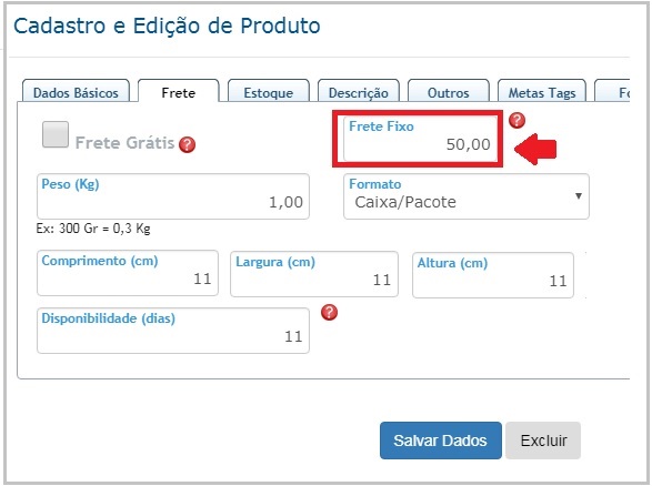 Através da opção de frete por produto é possível fixar um valor de frete para cada produto da loja.