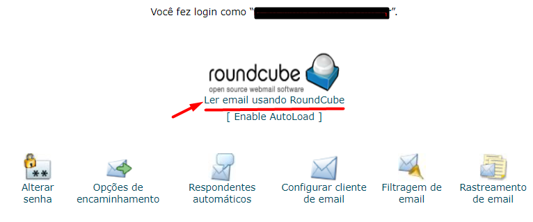 1 - Faça o login em sua conta de e-mail e clique em "Ler e-mail usando o Roundcube".