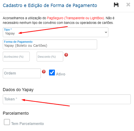OBSERVAÇÕES: Lembramos que ao alterar as configurações de parcelamento, você também precisará realizar essa mesma configuração em sua conta da Vindi (Yapay).